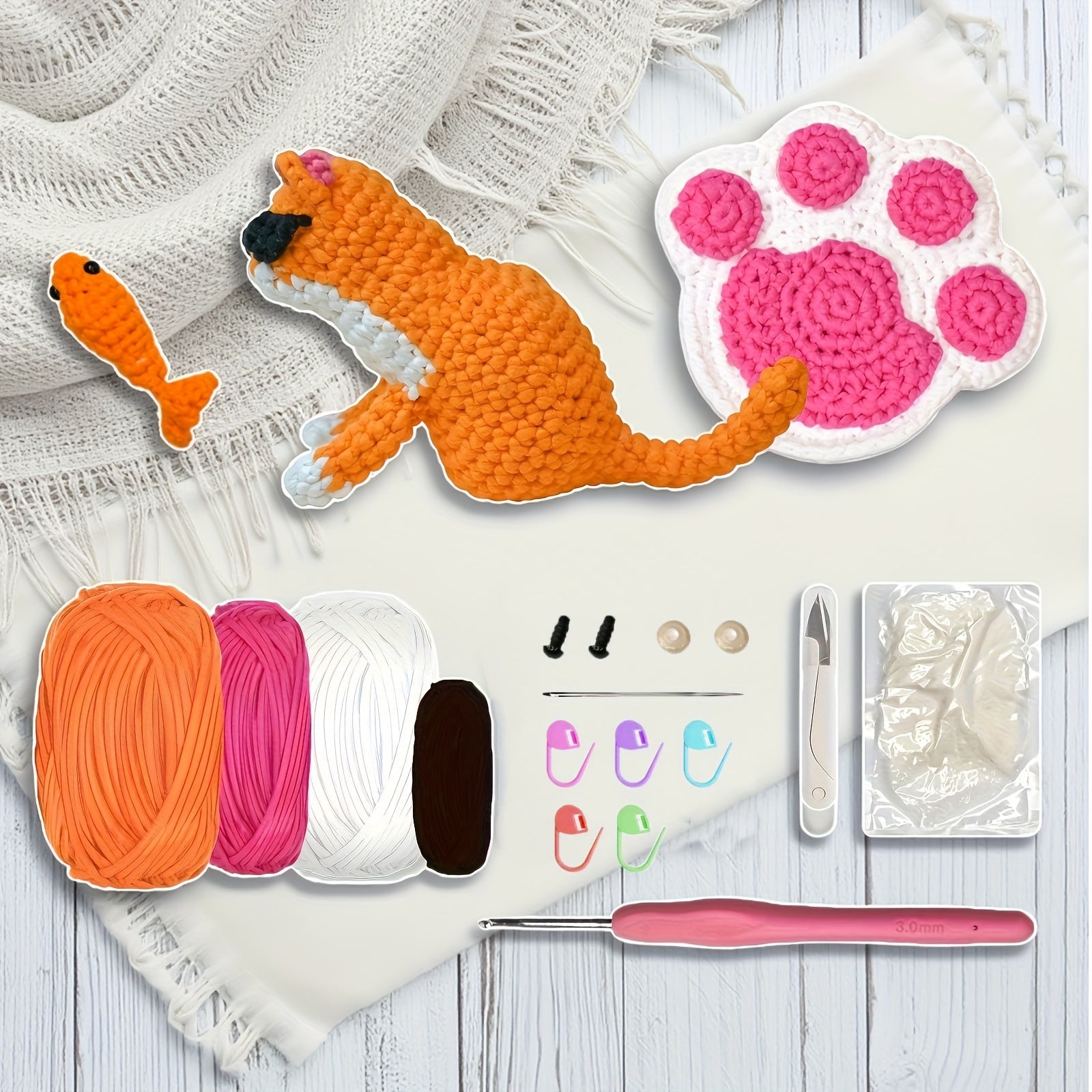 DIY Cat Crochet Starter Kits For Beginners Cat, Fish, Cat Paw Crochet Set Beginners Making Gifts, Coasters, Ornaments With Step-by-Step Video Tutorials Easy Amigurumi Crochet Kit