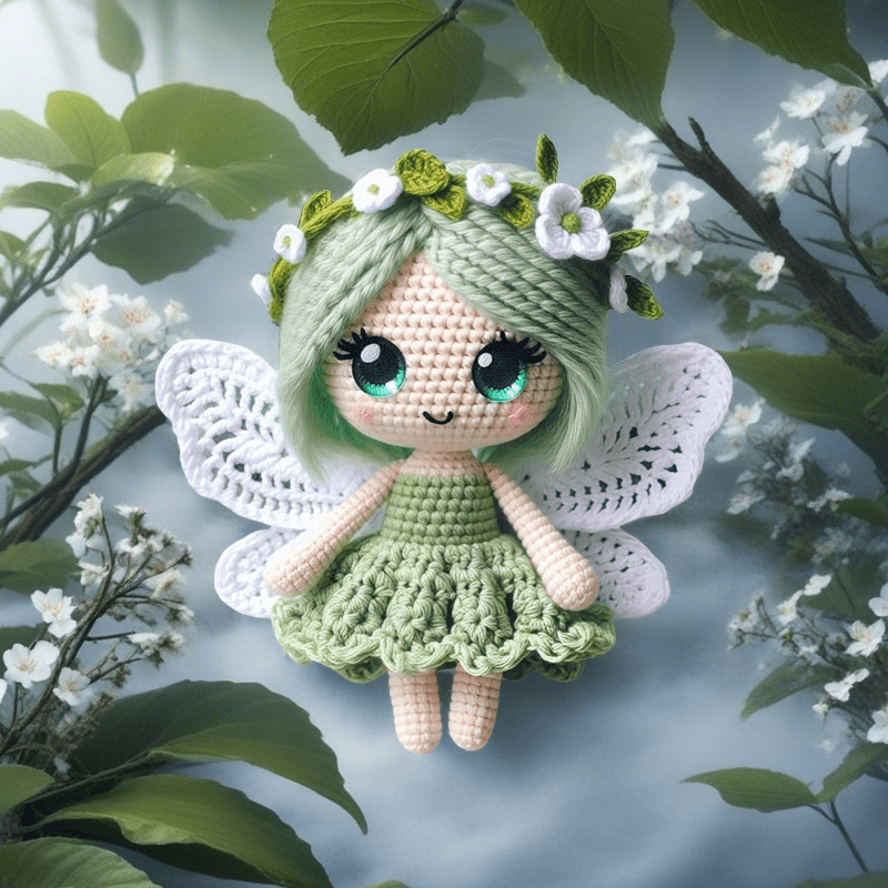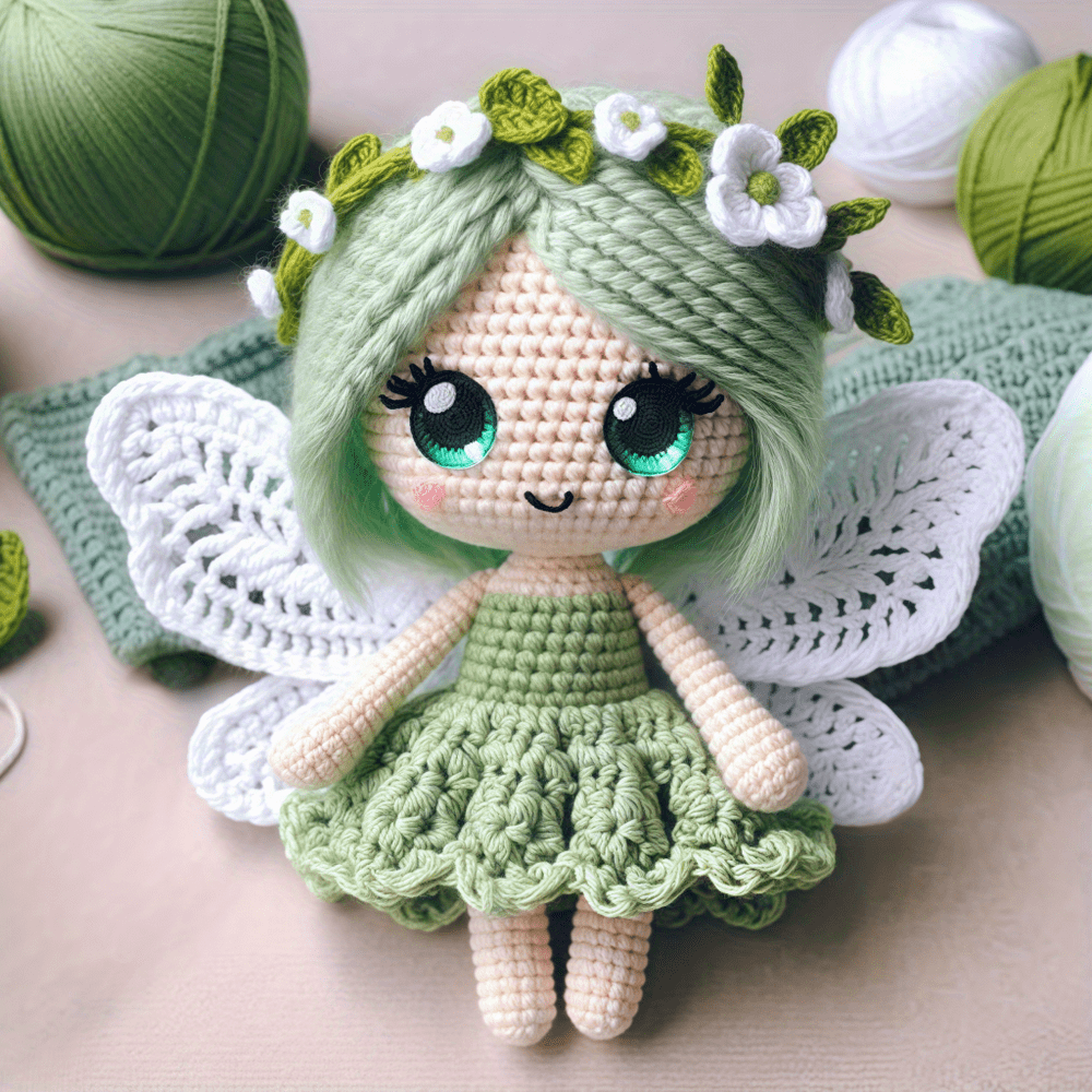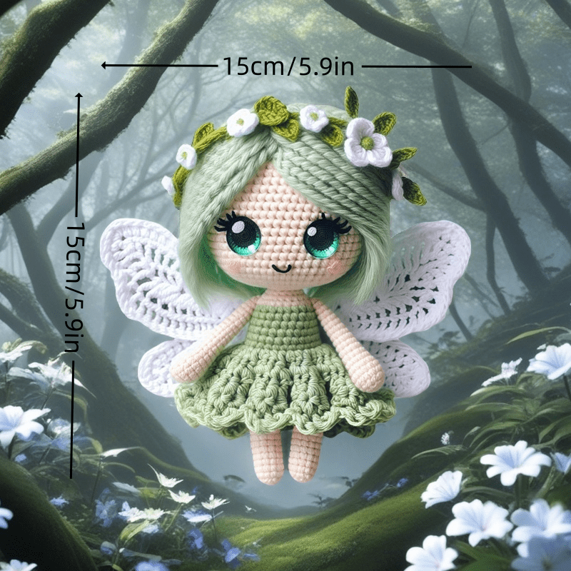 Butterfly Girl Crochet Doll Collection Doll Materials Kit, with green, blue, and pink dresses. Adorable princess Fleece toy sets, DIY crochet doll handmade gifts, very suitable for beginners.